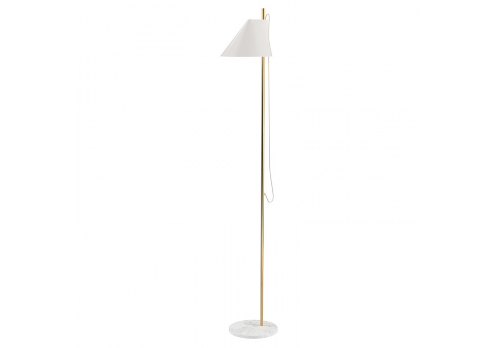 Yuh conçu par GamFratesi pour Louis Poulsen est un lampadaire avec base circulaire en aluminium ou marbre et tige verticale en laiton brossé. Le diffuseur est en aluminium moulé sous pression peint et abrite une source lumineuse à LED dimmable alimentée par un câble en plastique. Yuh est disponible en différentes finitions.