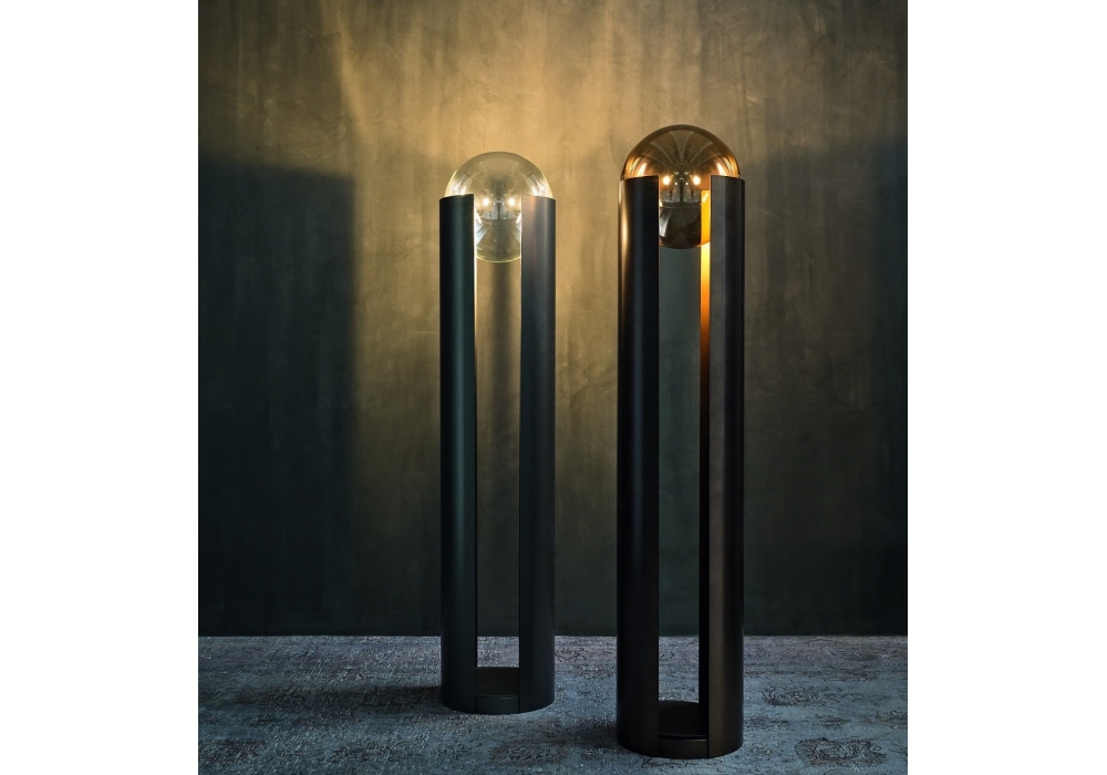 Softwing conçu par Carlo Colombo pour Natevo est un lampadaire avec en tôle d'acier, disponible en 2 finitions et disque en cuir. Diffuseur en verre soufflé dans les versions: transparente, fumée et bronze. Allumage par bouton poussoir.