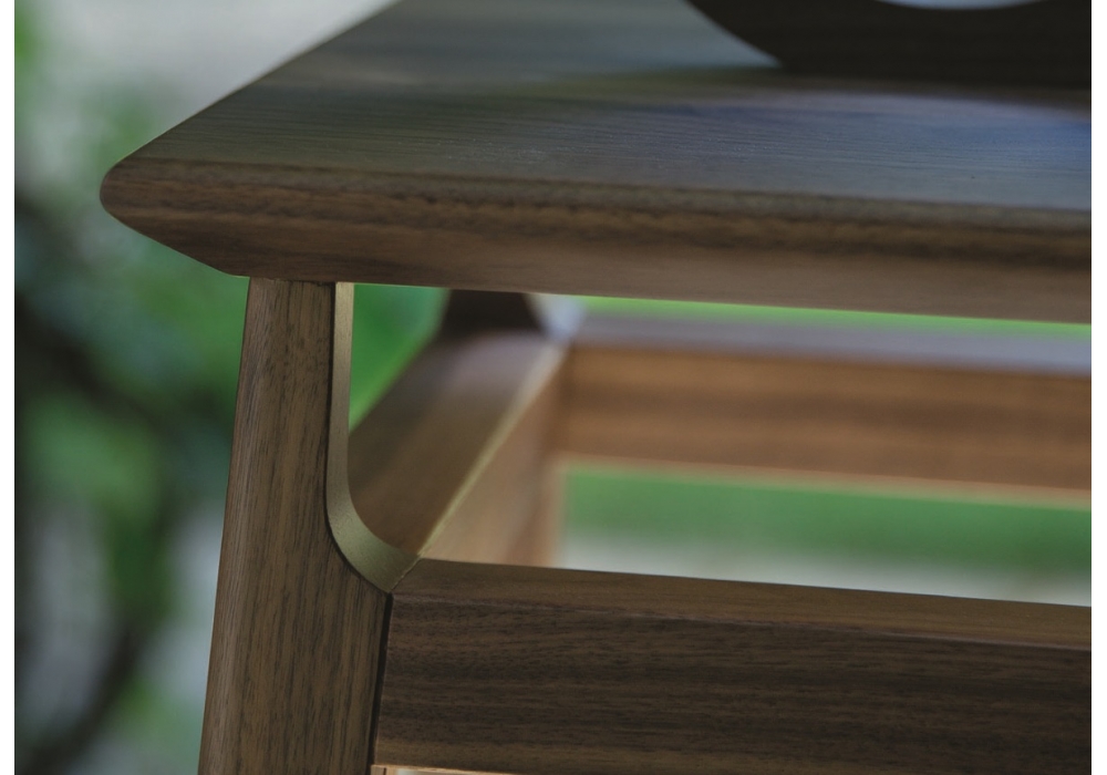 Amarcord conçu par P. Salvadé pour Porada est un lampadaire avec structure en noyer canaletta massif et panneaux de verre transparent. Piètement avec éclairage en LED 3000° K.