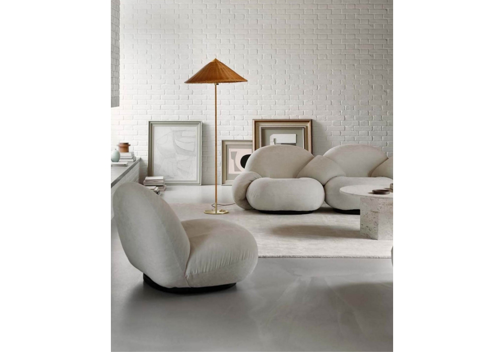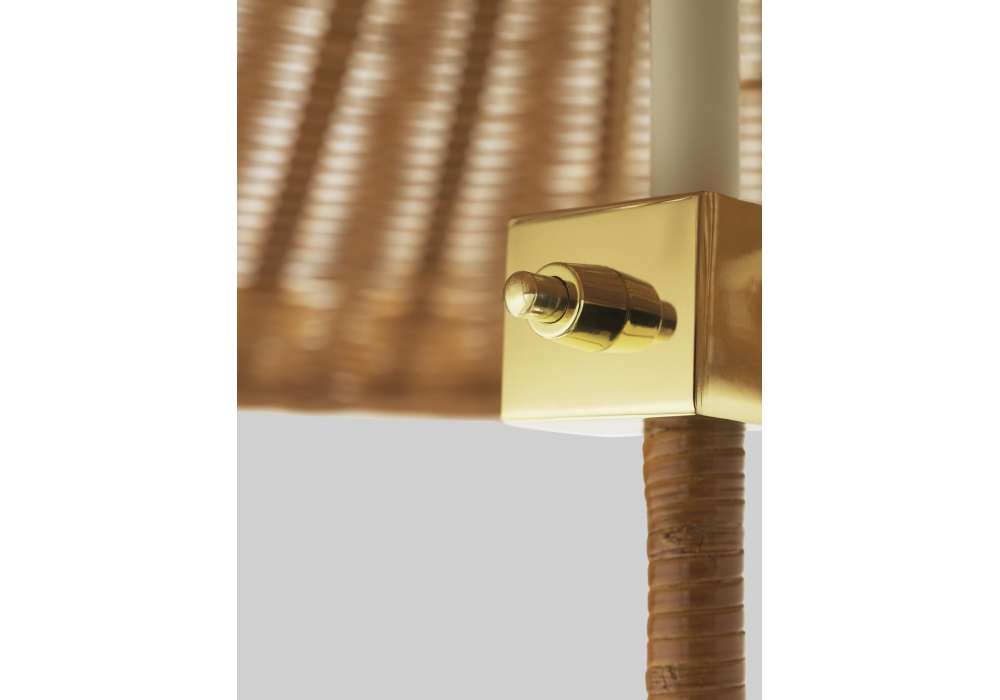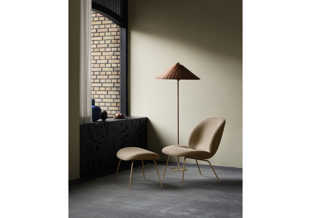 9602 conçu par Paavo Tynell pour Gubi est un lampadaire avec abat-jour en tissu toile, Osier Saule ou Bambou (non traité). Ampoule non incluse.