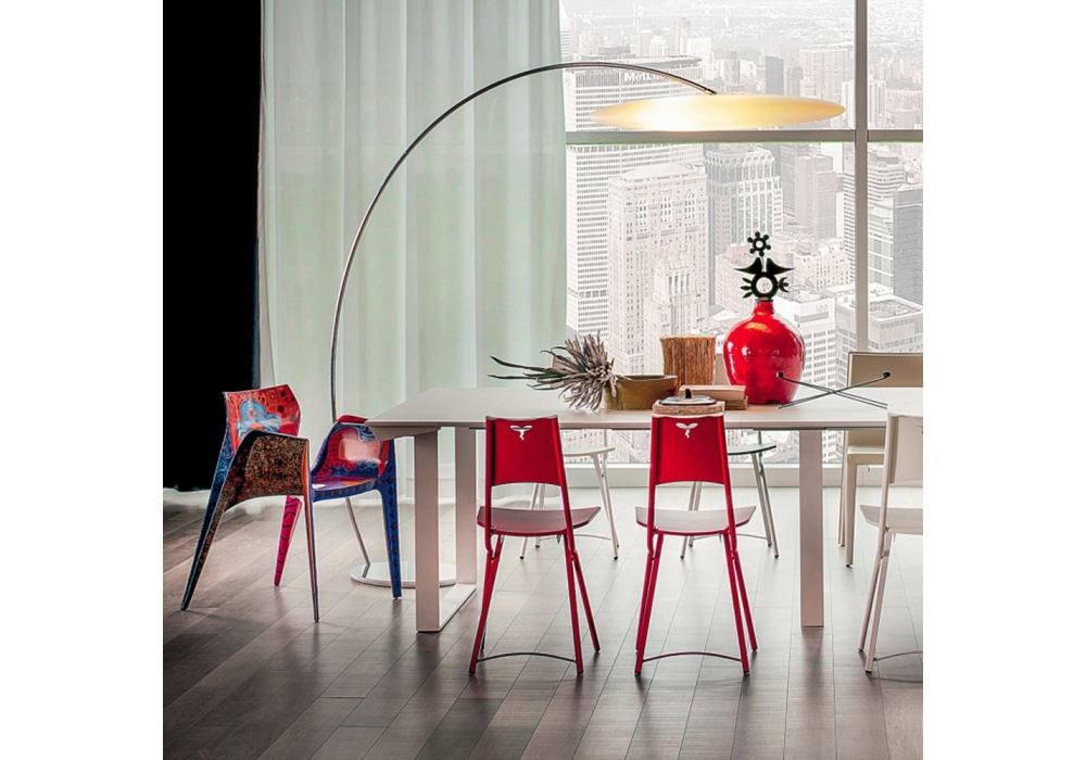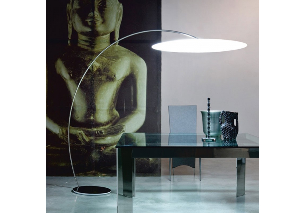 Astra Arc conçu par Piero De Longhi pour Cattelan Italia est un lampadaire avec diffuseur en polyéthylène blanc et base et tige en acier chromé. Avec interrupteur. Ampoule non incluse.