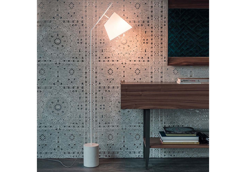 Karibù conçu par Oriano Favaretto pour Cattelan Italia est un lampadaire avec structure en acier, base en ciment coloré et diffuseur en cotonette. Disponible en deux finitions: blanc ou noir. Ampoule non incluse. Disponible en versions 220V et 110V.