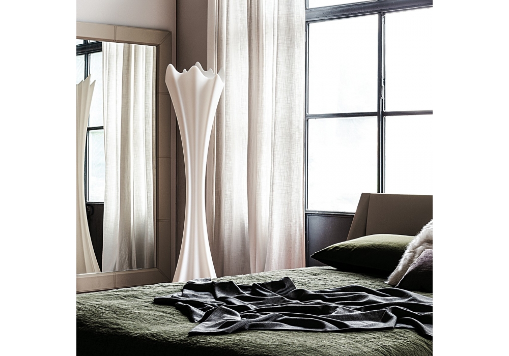 Sipario Light conçu par Pierpaolo Zanchin pour Cattelan Italia est un lampadaire en polyéthylène blanc. Il peut également être utilisé comme porte-manteau. Disponible en versions 220V avec ampoule incluse et 110V. avec ampoule non incluse. Avec interrupteur.