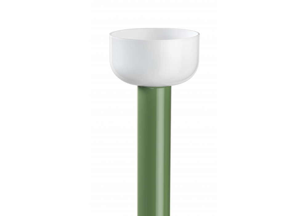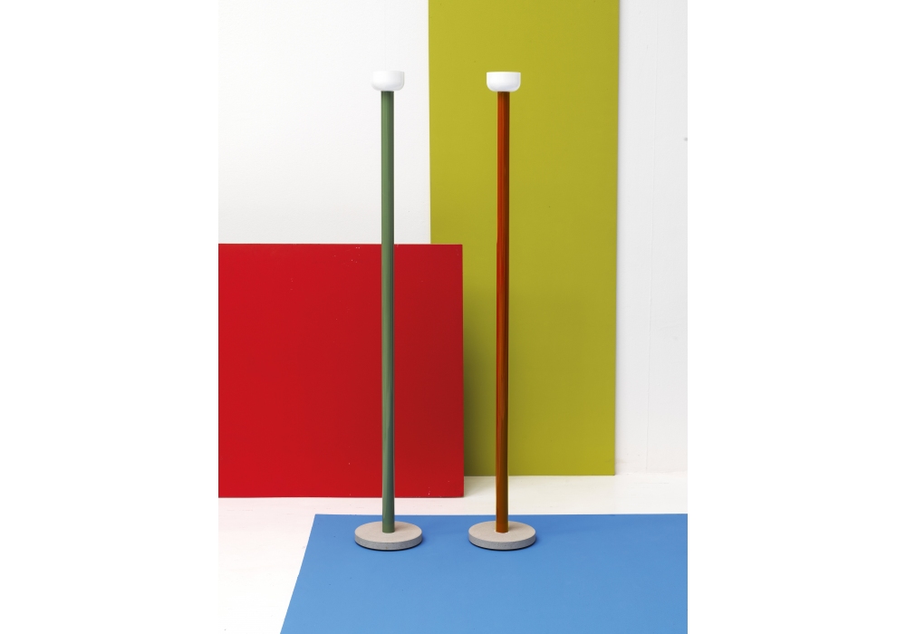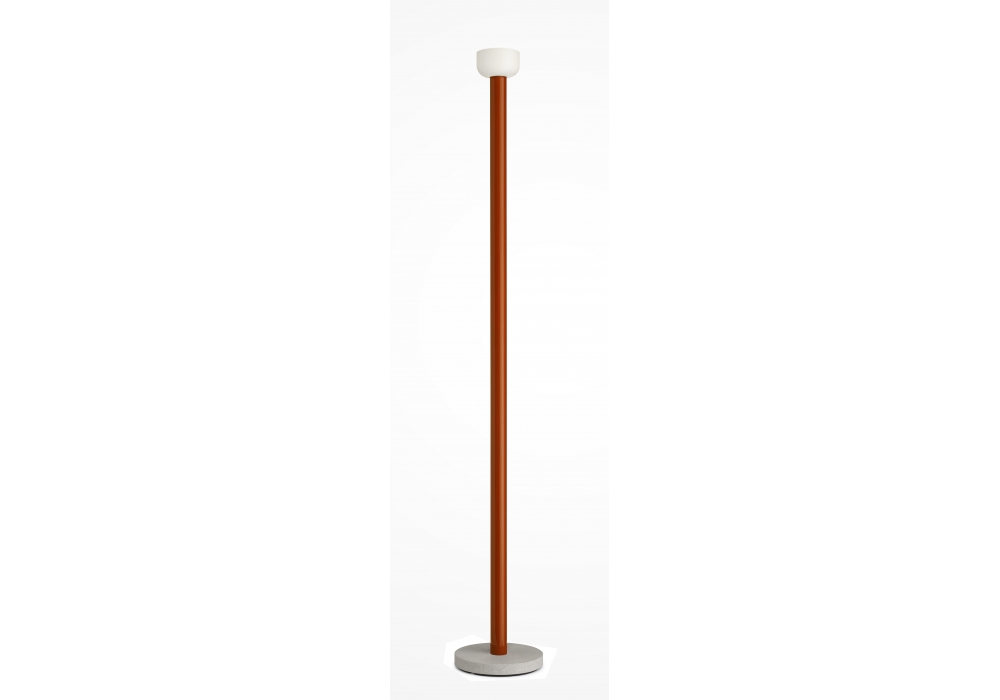 Bellhop conçu par Edward Barber & Jay Osgerby pour Flos est un lampadaire à lumière indirecte. Base en béton. Tige en aluminium peint brillant. Réflecteur en verre soufflé. Câble électrique avec variateur à pédale assurant la fonction marche/arrêt et la régulation du flux lumineux de 10 à 100 %. Alimentation sur prise avec fiches interchangeables. Source lumineuse LED incluse.
