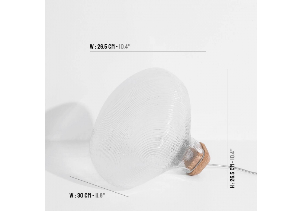 Tidelight conçue par Pierre Favresse pour Petite Favresse est une Lampadaire/lampe de table en verre soufflé transparent et liège. Prise britannique sur demande.