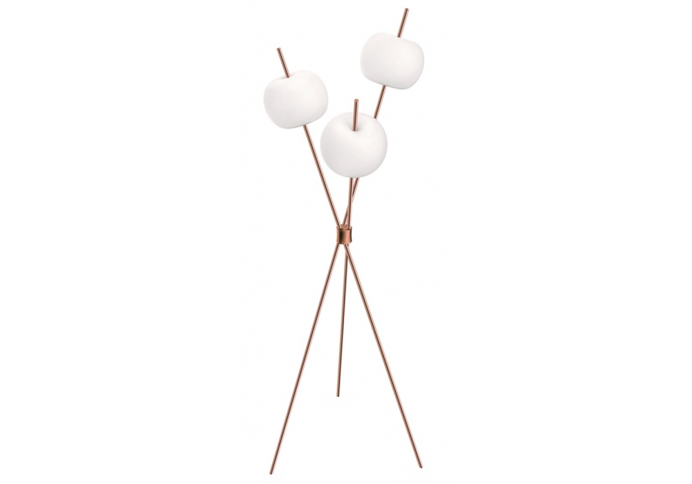 Kushi conçu par Alberto Saggia & Valerio Sommella pour Kundalini est un lampadaire avec diffuseur en verre opalin soufflé double couche et corps en métal verni disponible en finitions: noir, cuivre et laiton.