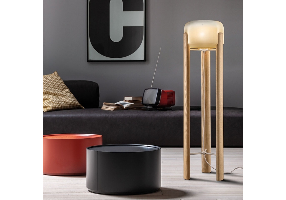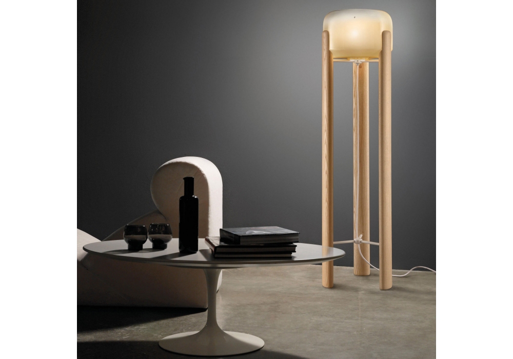 Sata conçu par Favaretto & Partners pour Vistosi est un lampadaire avec pieds et structure en bois de frêne. Le diffuseur est en verre blanc opale et abrite une source lumineuse LED ou halogène avec douille E27. Sata est disponible en différentes finitions.