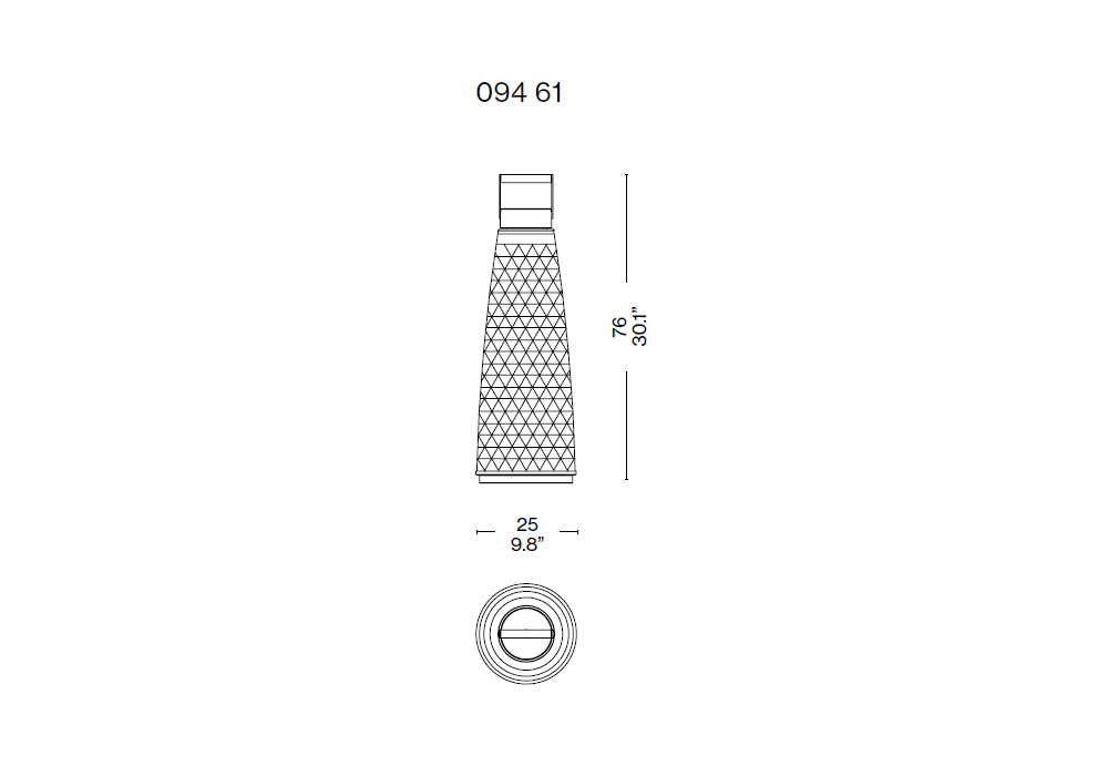 Singapore Sling conçue par Cassina est une lampe de sol rechargeable. Disponible en une seule taille avec verre fumé transparent et poignée en bois d'iroko.