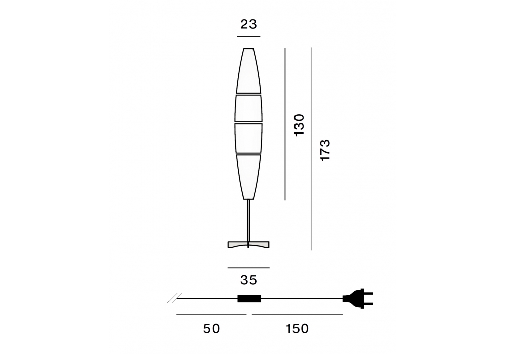 Havana designed by Jozeph Forakis for Foscarini is a floor lamp with stem and base in painted or chromed metal and lamp body structured by four elements in white polyethylene. The light source adopted is of the LED or halogen type with E27 socket powered by a transparent cable in plastic material. Havana is available in different versions and finishes.