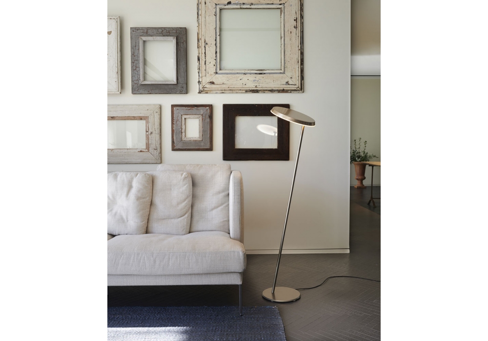 Amanita conçu par Mariana Pellegrino Soto pour Oluce est un lampadaire avec base circulaire et tige tubulaire en métal peint bronze. La tête est en métal peint en or satiné avec un diffuseur en PMMA et adopte une source de lumière LED dimmable.