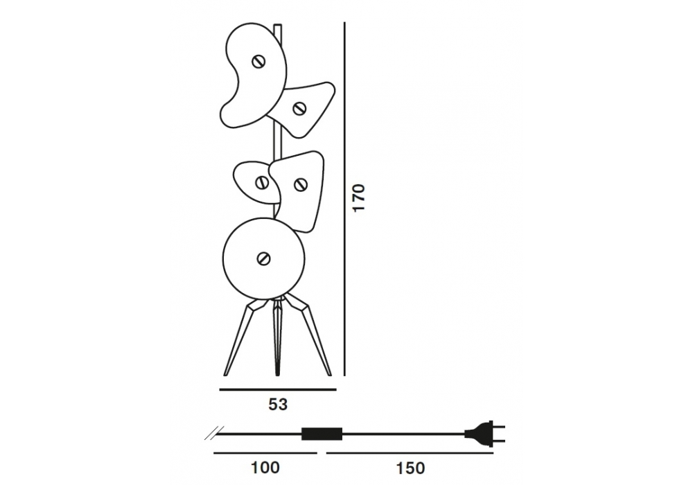 Orbital conçu par Ferruccio Laviani pour Foscarini est un lampadaire réalisé avec des plaques polychromes ou blanches et polyformes en verre sérigraphié, montées sur une structure en métal laqué. La source lumineuse utilisée est de type LED ou halogène alimentée par un câble en plastique transparent. Orbital est disponible en différentes finitions.