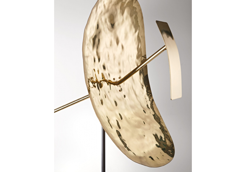 Ribot conçu par Alessandro Mason pour DeCastelli est un lampadaire LED réalisé avec un abat-jour en laiton poli et une structure en fer.