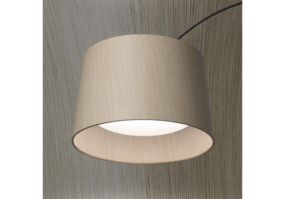 Twiggy Wood conçu par Marc Sadler pour Foscarini est un lampadaire structuré par un arc soutenu par une base circulaire en fibre de verre et métal peint. L'abat-jour est en bois de chêne blanchi avec un diffuseur en polycarbonate. La source lumineuse adoptée est du type LED dimmable dans différentes versions. Twiggy Wood est disponible en différents modèles et finitions de structure.