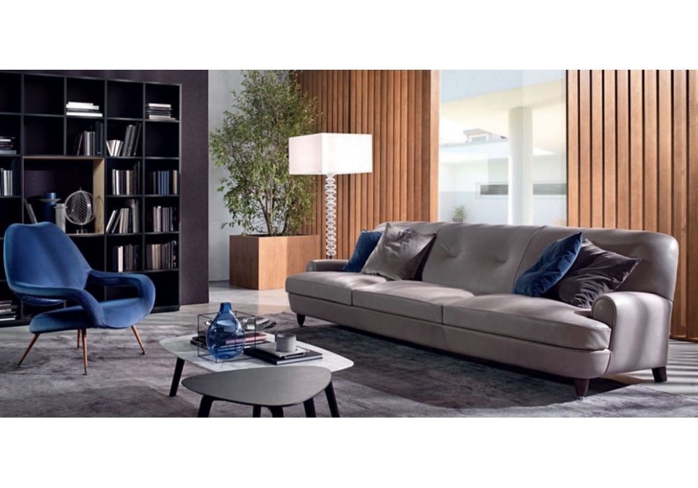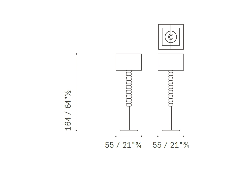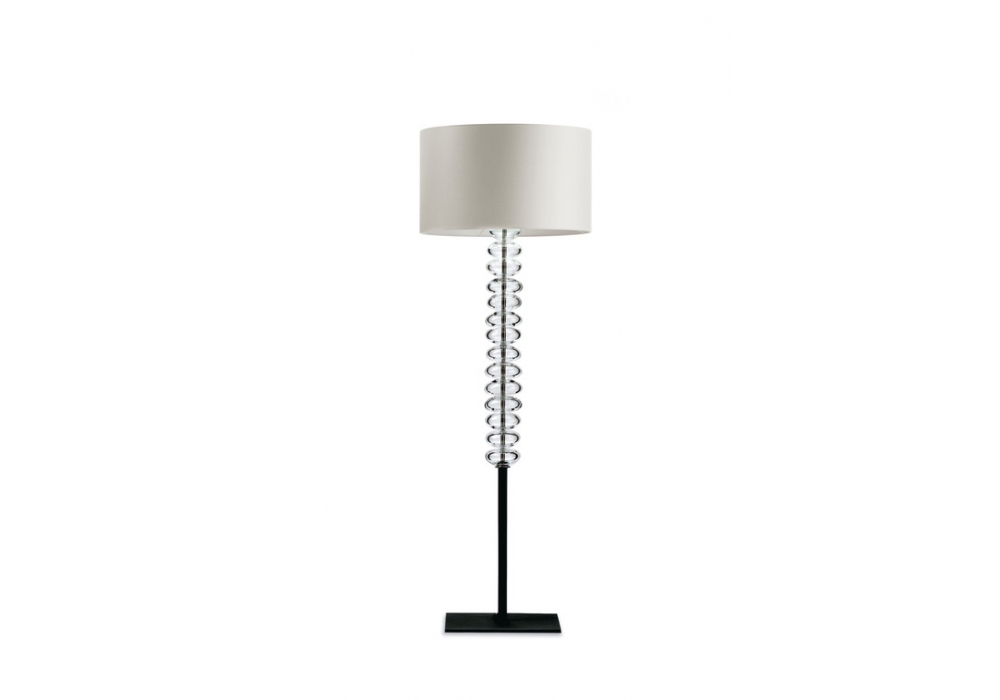 Fede conçu par Jean-Marie Massaud pour Poltrona Frau est un lampadaire avec base en métal peint, tige en métal peint fini avec forme extérieure en verre transparent et abat-jour double couche avec toile à l'extérieur et PVC à l'intérieur.