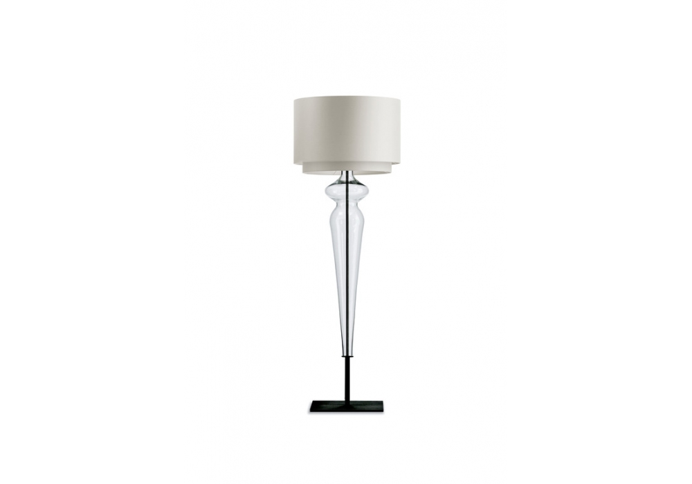 Holly conçu par Jean-Marie Massaud pour Poltrona Frau est un lampadaire avec base en métal peint, tige en métal peint fini avec forme extérieure en verre transparent et abat-jour double couche avec toile à l'extérieur et PVC à l'intérieur.