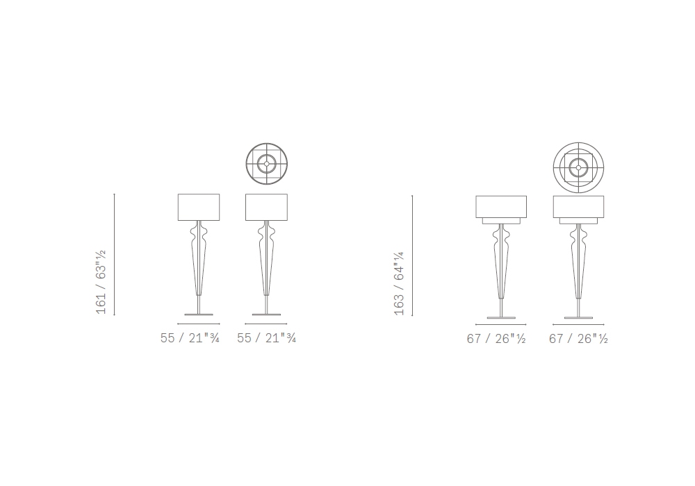 | Dimensions | Ø 55 x H 161 cm; Ø 67 x H 163 cm |