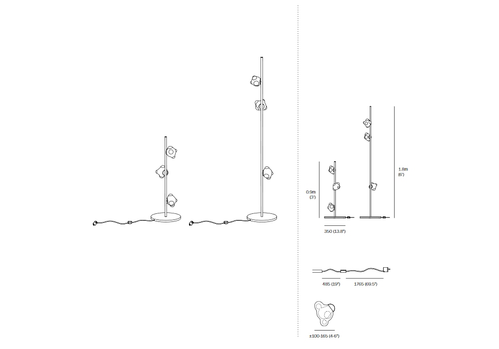 57 Stem conçu par Omer Arbel pour Bocci est un lampadaire avec structure tubulaire et base circulaire en laiton disponible en deux finitions différentes, laiton ou noir mat. Les diffuseurs sont en verre soufflé avec source lumineuse LED. 57 Stem est disponible en différentes versions et tailles.