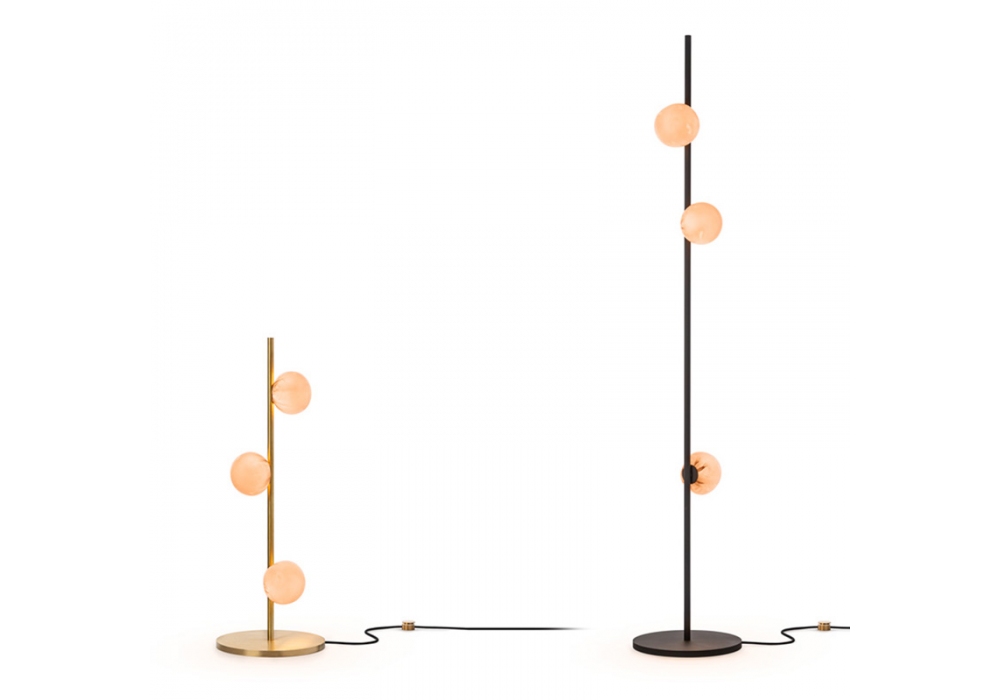 84 Stem conçu par Omer Arbel pour Bocci est un lampadaire avec structure tubulaire et base circulaire en laiton disponible en deux finitions différentes, laiton ou noir mat. Les diffuseurs sont en verre soufflé avec source lumineuse LED. 84 Stem est disponible en différentes versions et tailles.