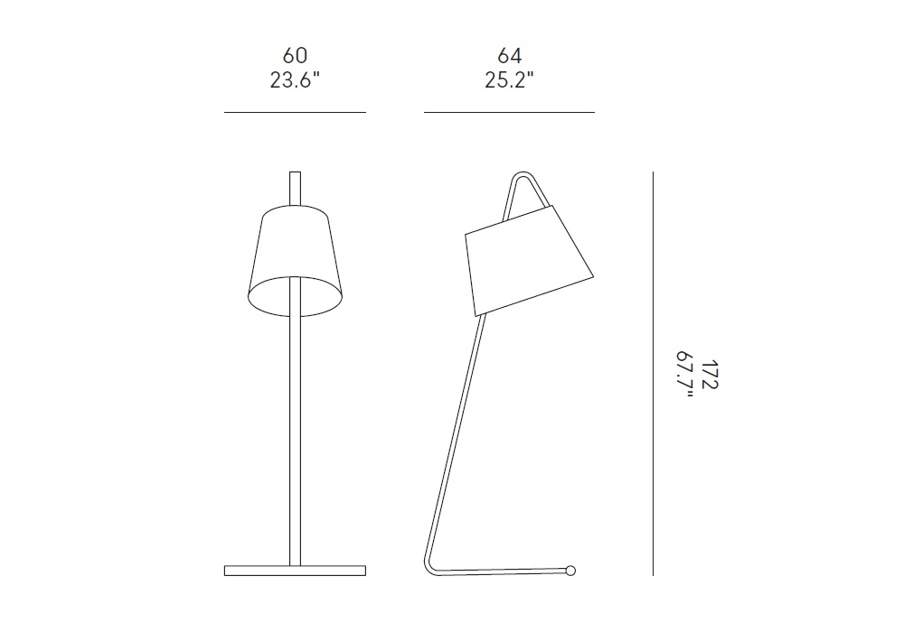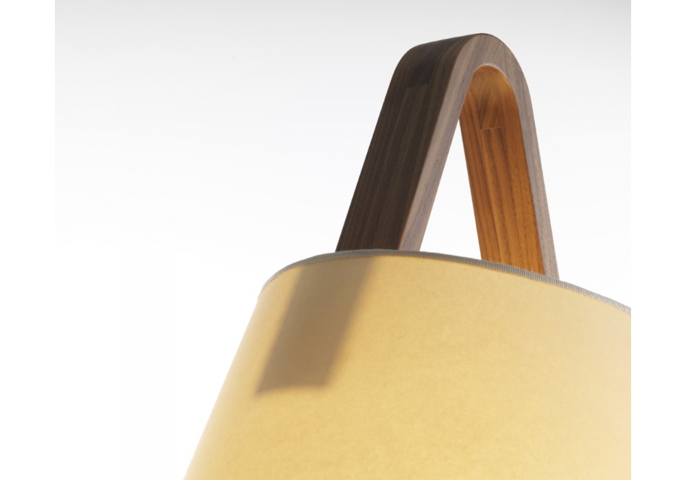 Numero 3 conçu par Patrizia Bertolini pour Casamania & Horm est un lampadaire réalisé avec base en acier satiné, tige en noyer Canaletto massif et abat-jour en tissu couplé avec PVC.
