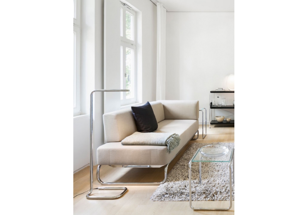 LUM 125 conçu par Ulf Möller pour Thonet est un lampadaire avec structure en acier tubulaire chromé avec 8 LED blanc chaud. Bras horizontal orientable à 360° (avec butée).