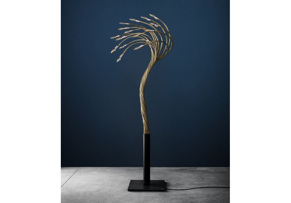 Sottovento 15 conçu par Enzo Catellani pour Catellani & Smith est un lampadaire LED avec variateur de sol. Le piètement est en fer brut ciré, et la structure est constituée de 15 flex moulables en laiton ou nickel.