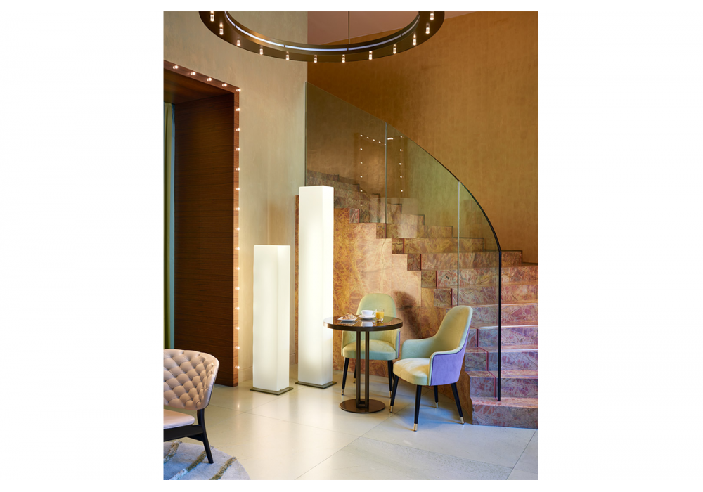Brick conçu par Maurizio Duranti pour Slide est un lampadaire aux formes géométriques, adapté à n'importe quel environnement grâce à la simplicité des lignes. Il a une base en métal laqué noir et est disponible en différentes tailles et finitions