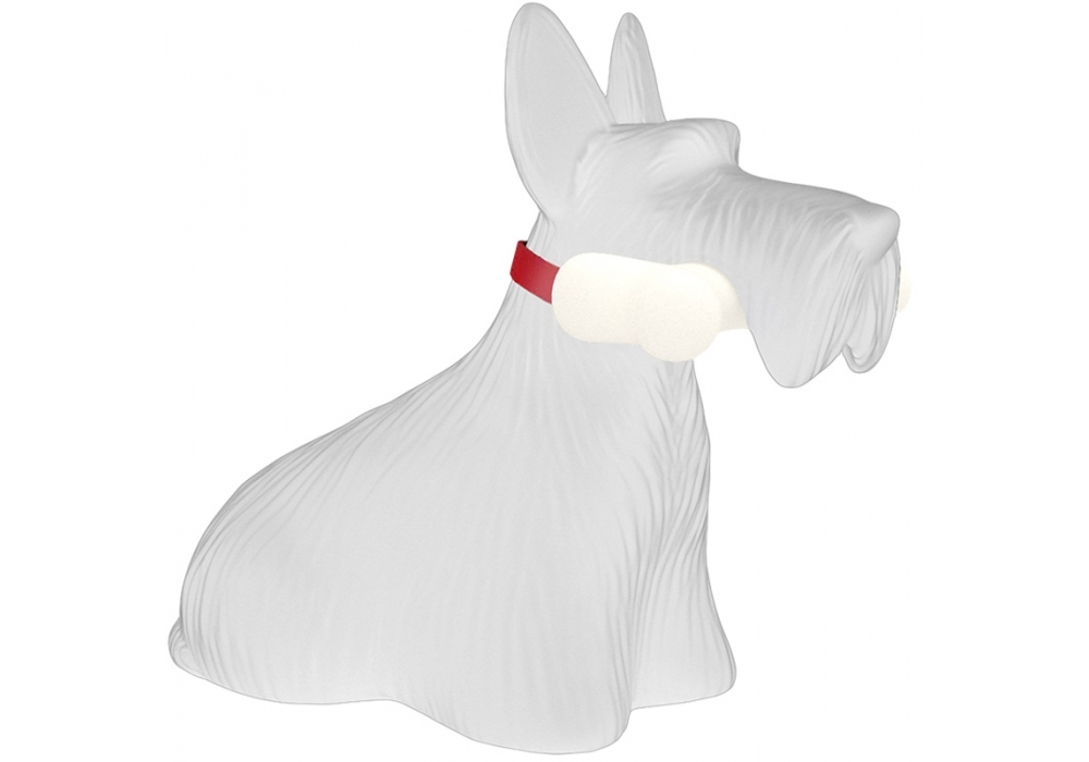 Scottie conçu par Stefano Giovannoni pour Qeeboo est un lampadaire portable et rechargeable entièrement structuré en polyéthylène. La source lumineuse utilisée est de type LED à dégradé de blanc pouvant être pilotée par télécommande. Scottie est disponible en différentes couleurs.