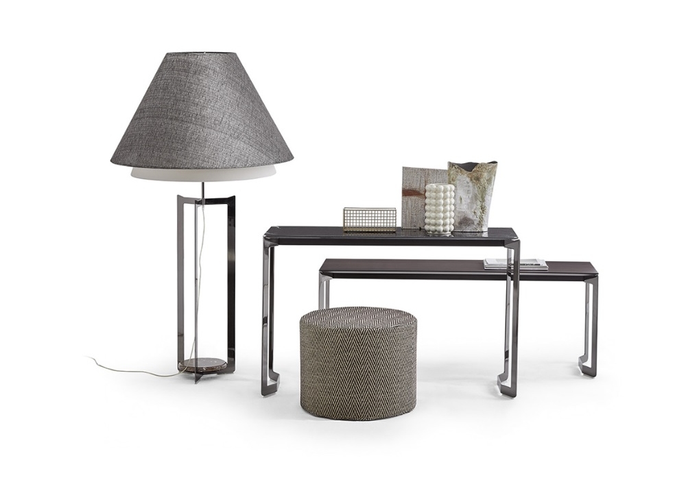 Yuki conçu par A. Bimbi pour Dema est un lampadaire réalisé avec une structure en métal découpé au laser avec anti-dérapant en matière thermoplastique moulée. Base avec support en marbre. Abat-jour intérieur en toile de lin montée sur PVC et extérieur en shantung de soie. Disponible en différentes finitions.