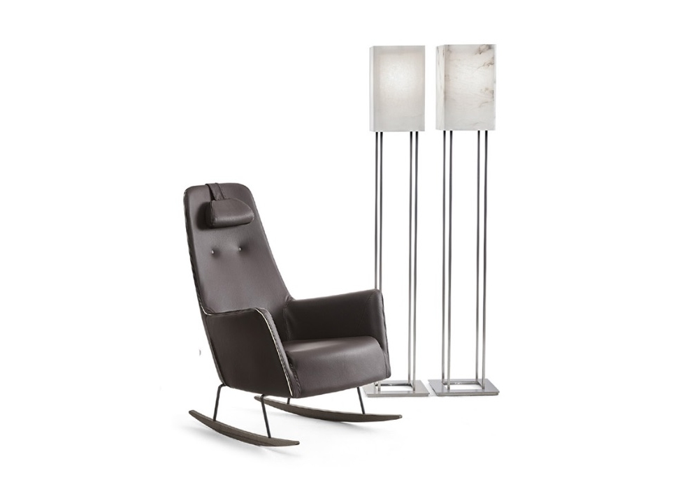 Alabastro conçu par Carlo Bimbi pour Dema est un lampadaire réalisé en albâtre de Volterra avec des finitions en acier inoxydable.