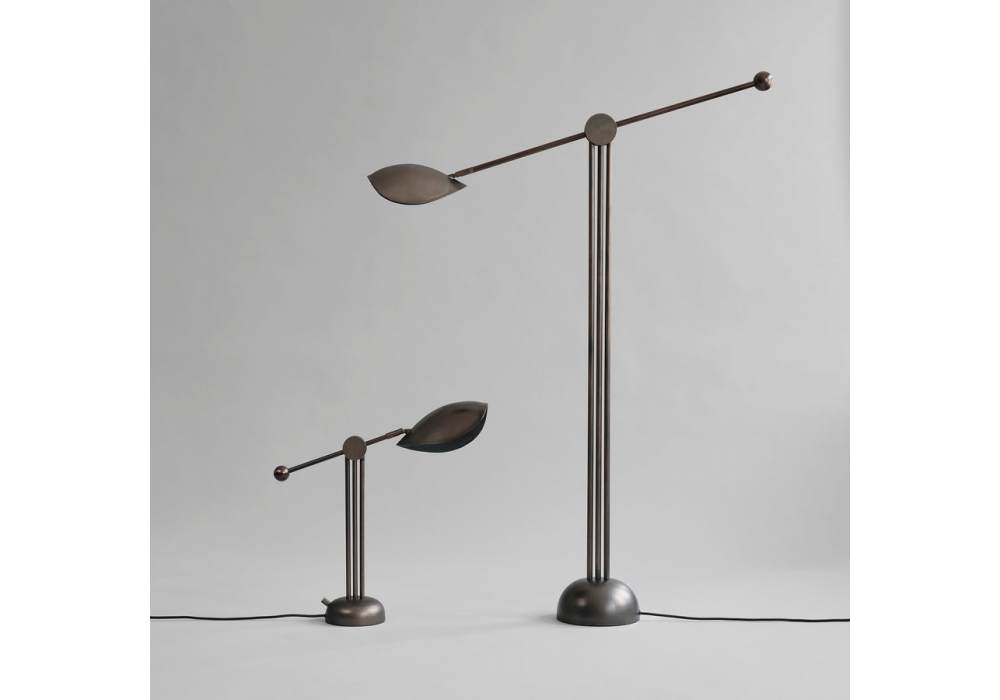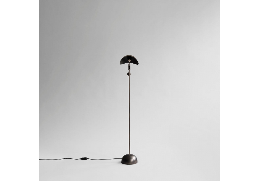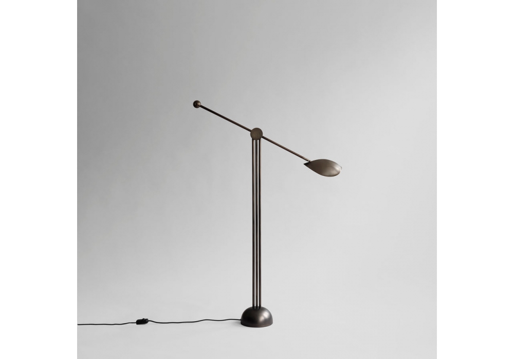 Stingray conçu par Kristian Sofus Hansen & Tommy Hyldahl pour 101 Copenhagen est un lampadaire à bras réglable, réalisé en métal finition bronze.