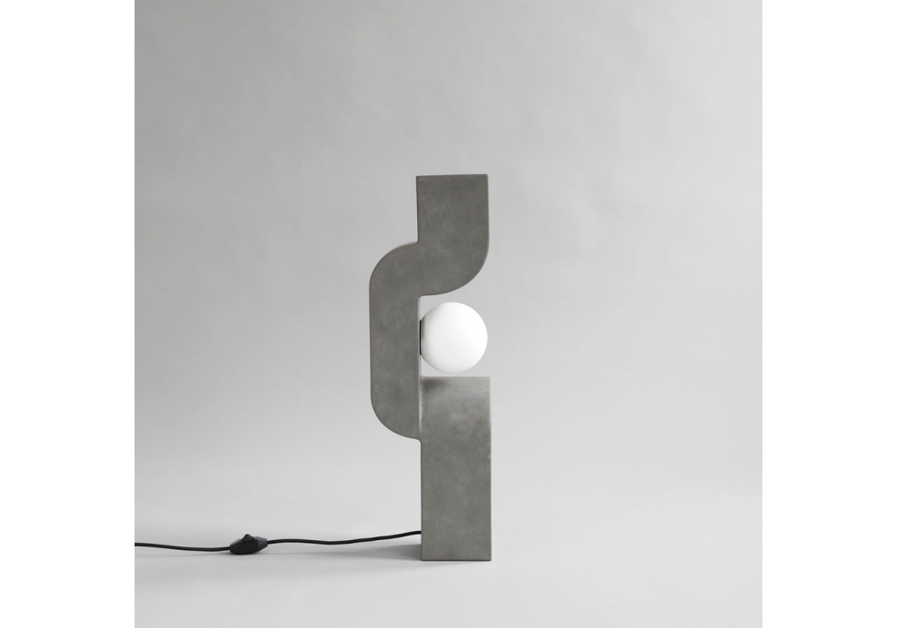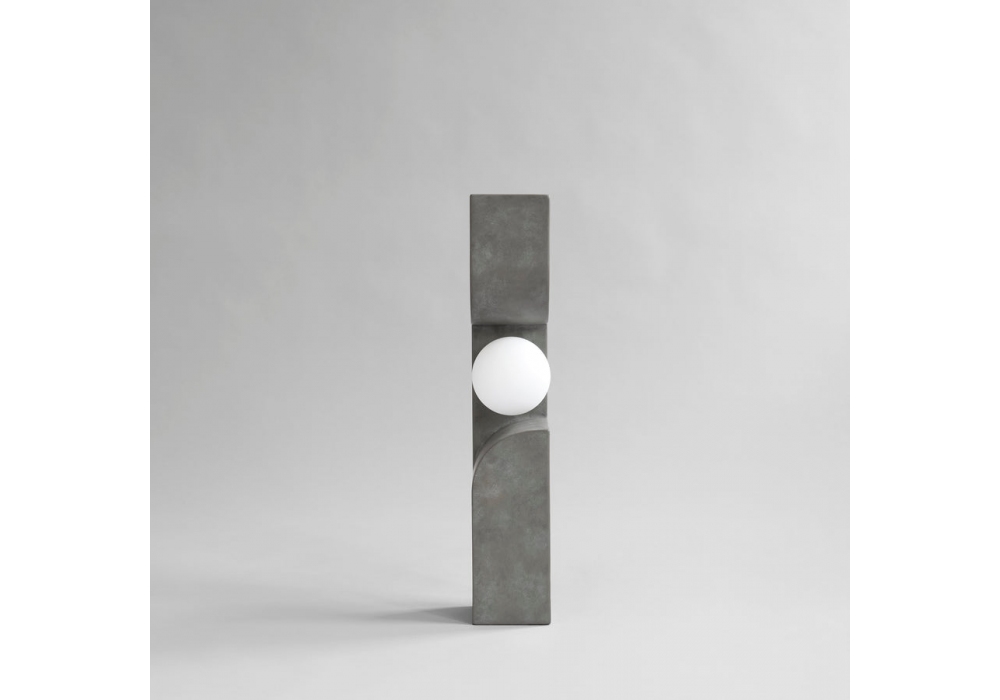Sitting Man Big conçu par Kristian Sofus Hansen & Tommy Hyldahl pour 101 Copenhagen est un lampadaire en béton et sphère en verre opale.