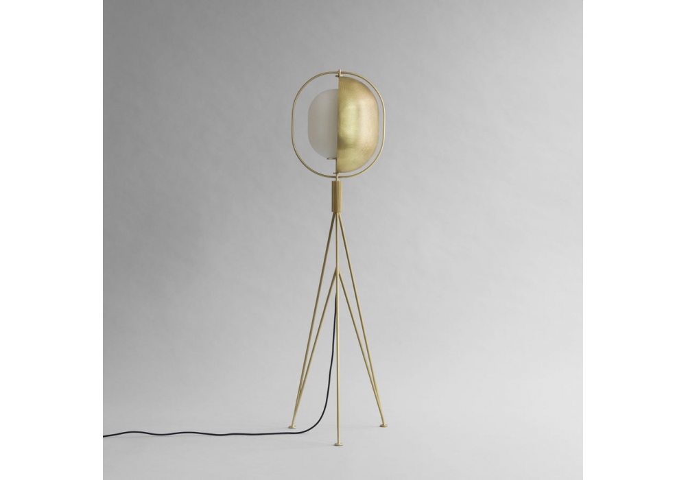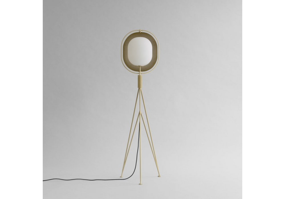 Pearl conçu par Kristian Sofus Hansen & Tommy Hyldahl pour 101 Copenhagen est un lampadaire en métal plaqué laiton et diffuseur en verre opale.