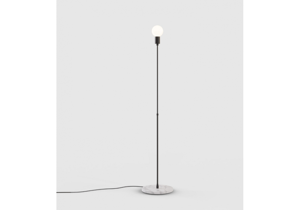 Dot 08 conçu et produit par Lambert & Fils est un lampadaire avec base en marbre, structure en laiton et acier enduit de poudre et diffuseur en verre opale blanc laiteux. Disponible en différentes finitions.