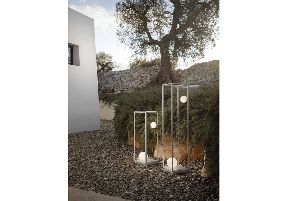 Abachina conçu par Edmondo Testaguzza pour Karman est un lampadaire LED avec structure en aluminium et diffuseur en verre satiné blanc. Disponible en différentes finitions. Usage interne.