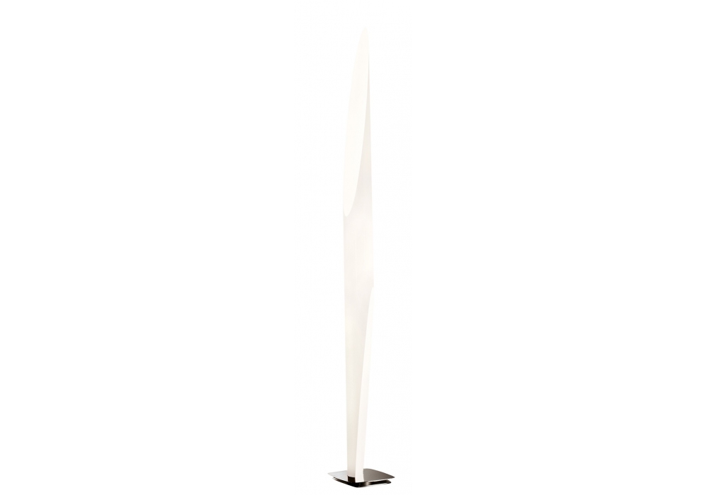 Shakti conçu par Marzio Rusconi Clerici pour Kundalini est un lampadaire dimmable à deux lumières, lecture et ambiance, avec diffuseur tubulaire en plexiglas blanc découpé au laser fixé sur une base en acier satiné. Disponible en différentes dimensions.