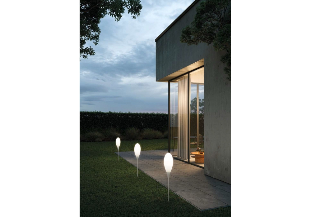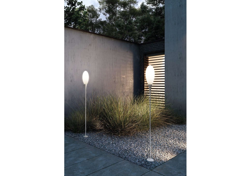 Spillo Outdoor conçu par Constantin Wortmann pour Kundalini est un lampadaire d'extérieur avec diffuseur en polyéthylène rotomoulé, câble électrique en néoprène avec connecteur IP65. Disponible avec piquet, avec socle ou avec dispositif fixable au sol.