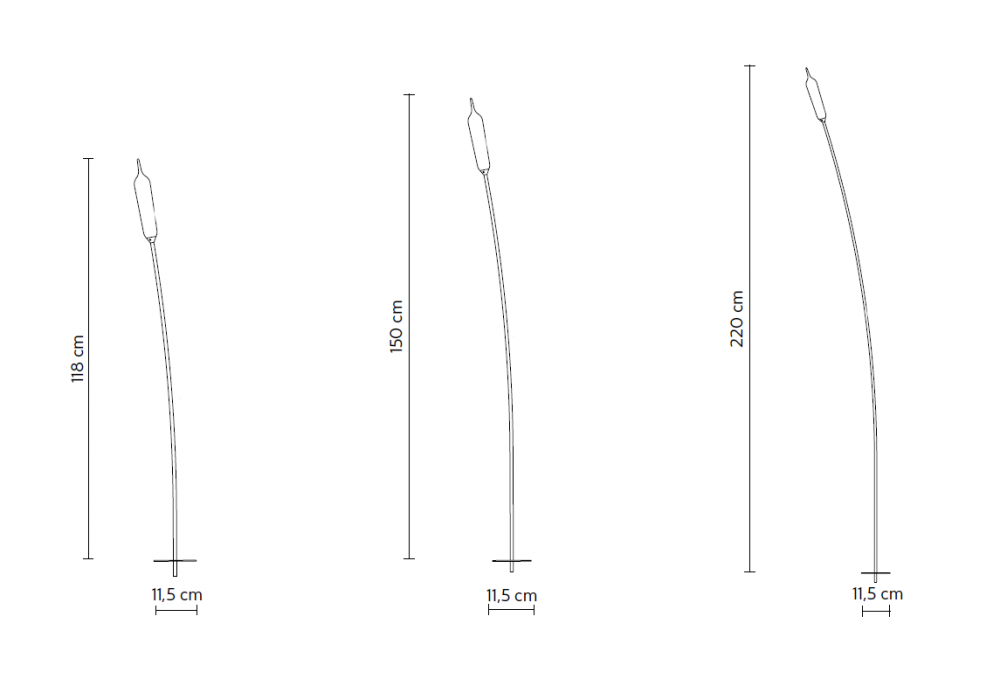 | Dimensions | • 11,5 x H 118 cm; • 11,5 x H 150 cm; • 11,5 x H 220 cm |