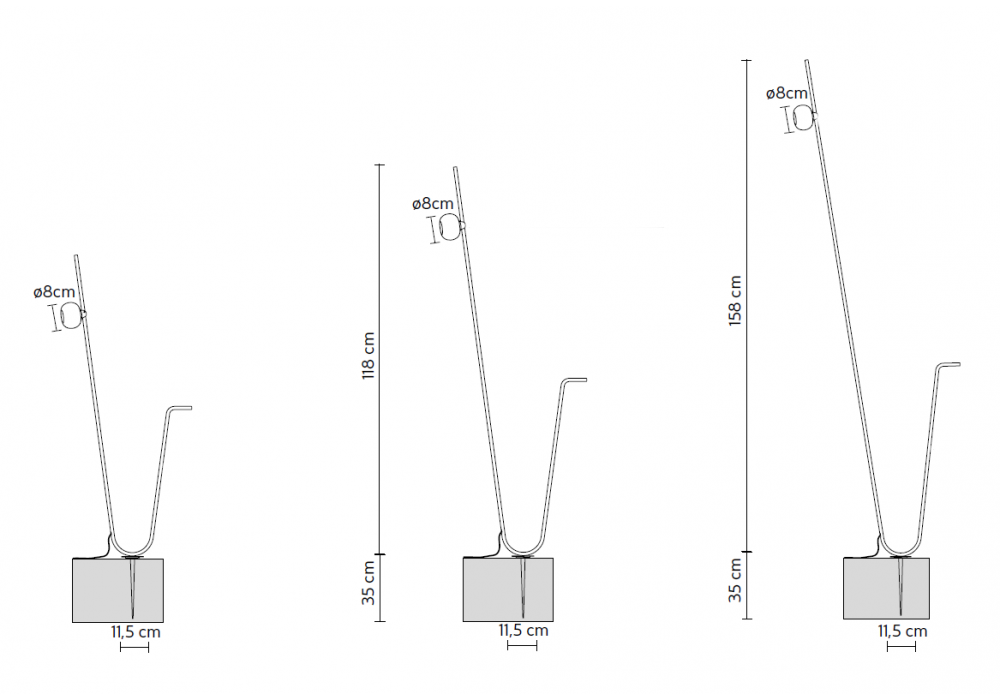 | Dimensions | • 11,5 x H 93 cm; • 11,5 x H 118 cm; • 11,5 x H 158 cm |