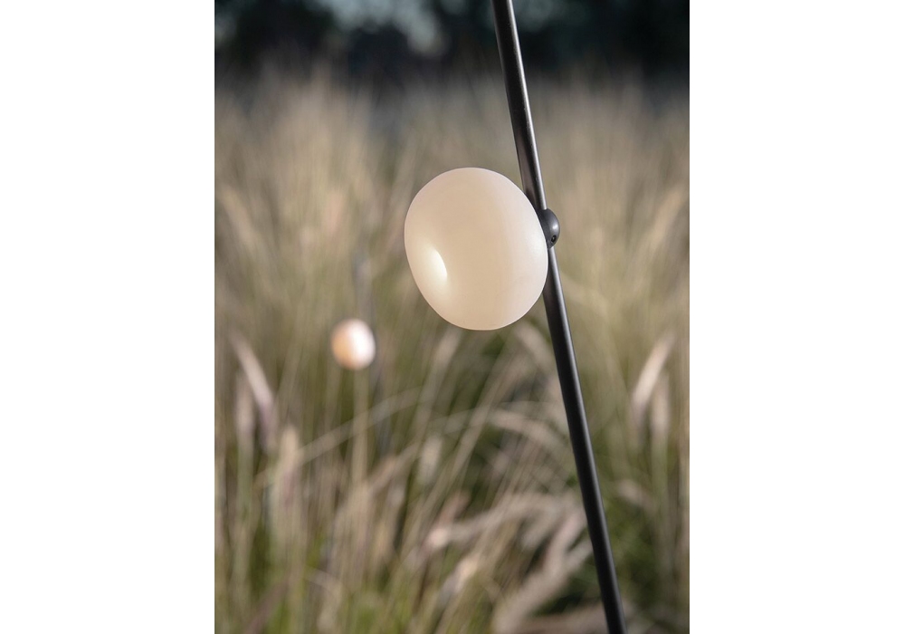 Pois Outdoor conçu par Matteo Ugolini pour Karman est un lampadaire avec structure en aluminium noir mat et diffuseur en résine blanche. Disponible en différentes tailles. Usage externe.
