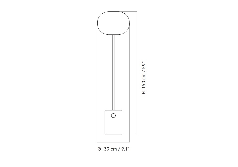 JWDA conçu par Jonas Wagell pour Audo Copenhagen est un lampadaire avec base en travertin et parties métalliques en laiton brossé ou en marbre de Carrare avec parties métalliques en laiton bronzé. Abat-jour en verre opale.