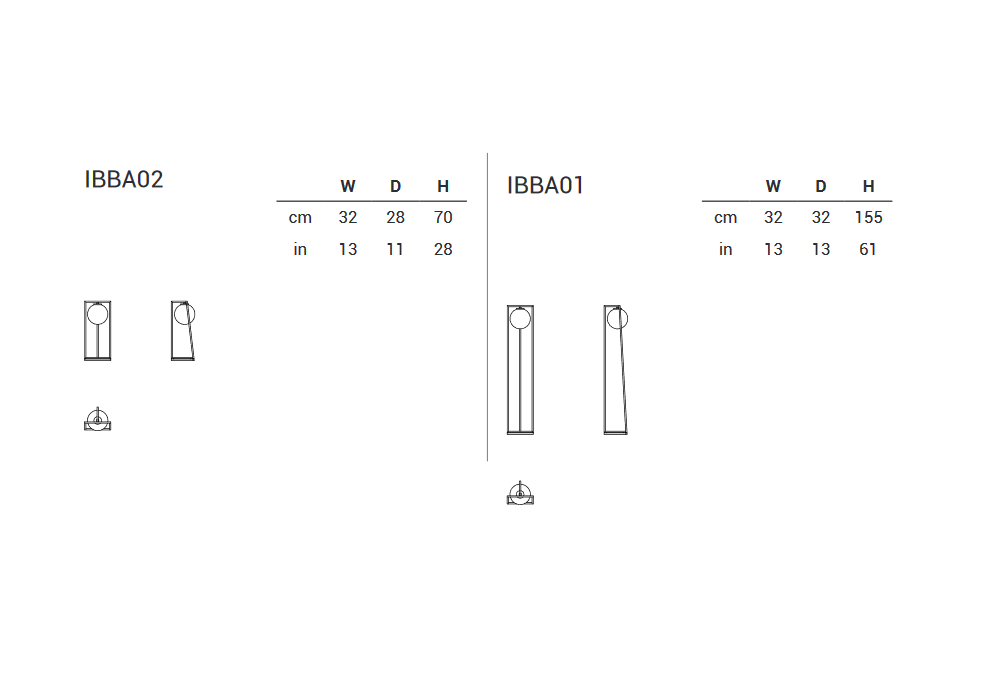 | Dimensions | - 32 x 28 x H 70 cm; - 32 x 32 x H 155 cm. |