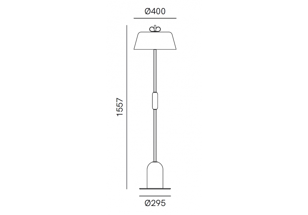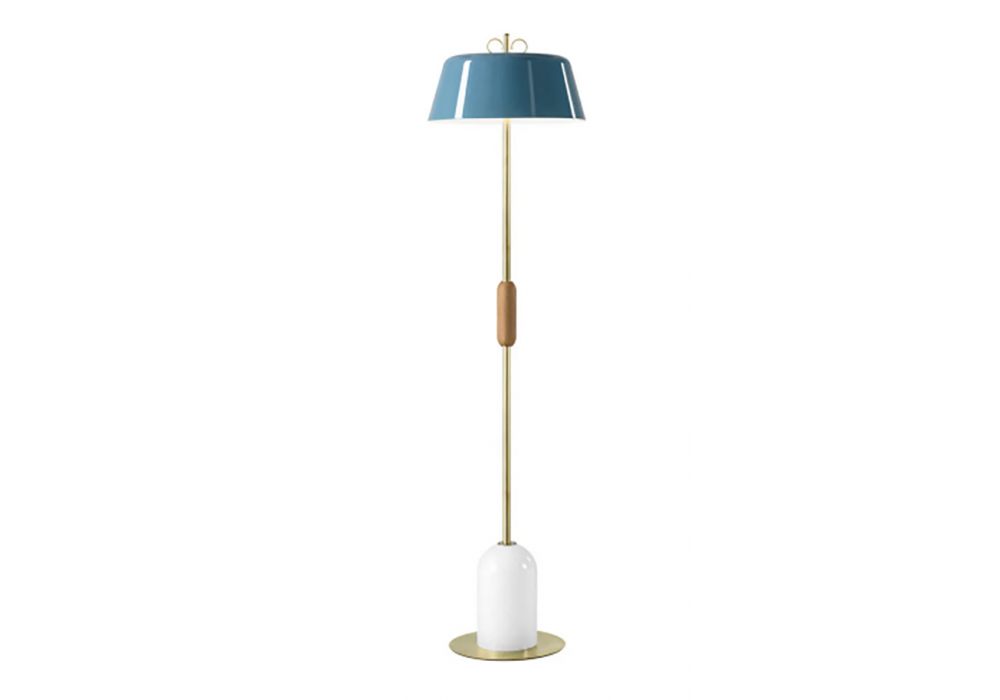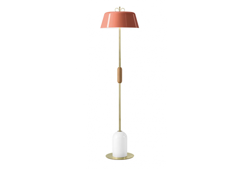 Bon Ton N9 conçue par Cristina Celestino pour Il Fanale est un lampadaire avec une base cylindrique en aluminium peint et une tige verticale en laiton agrémentée d'une poignée en chêne. Le diffuseur est de forme circulaire en aluminium peint et abrite une source lumineuse LED. Bon Ton N9 est disponible en différentes finitions.