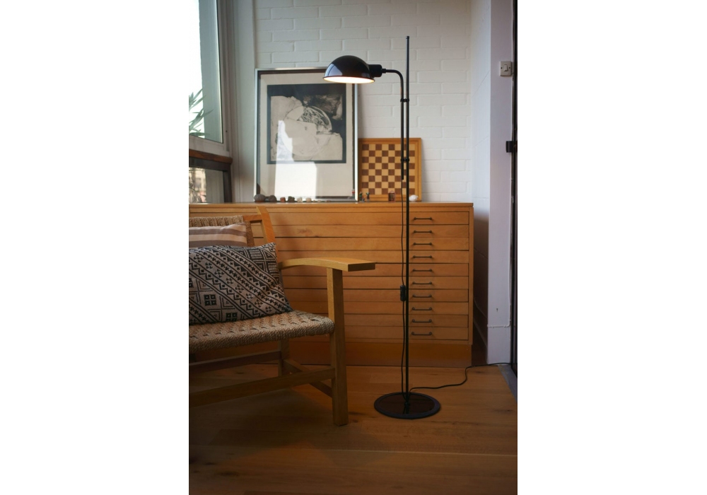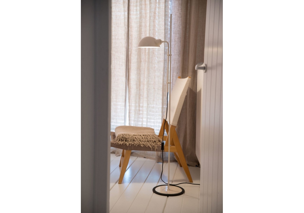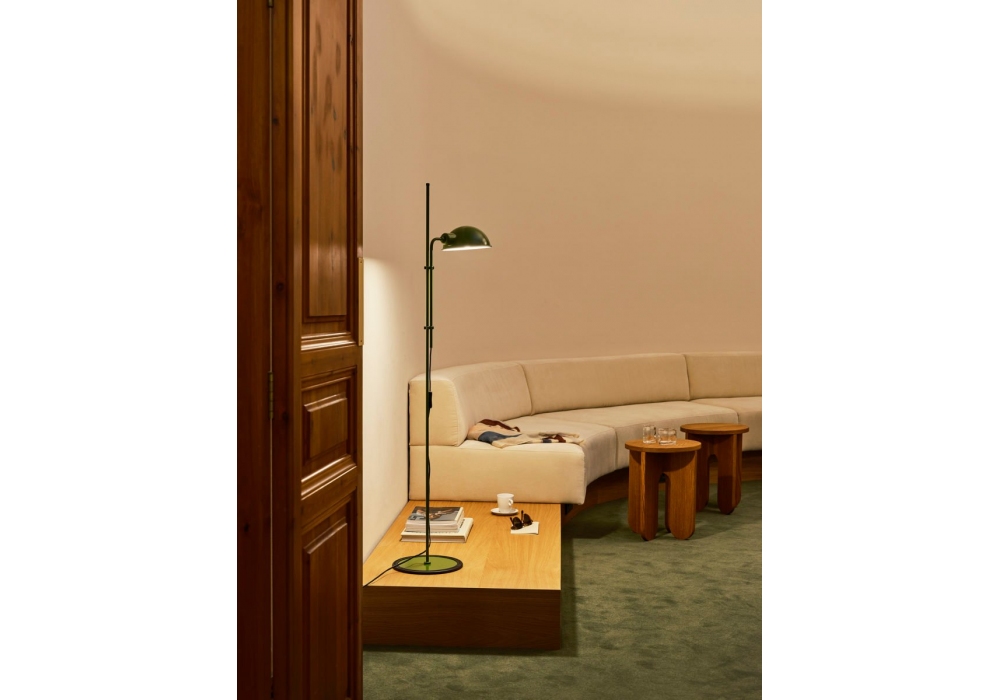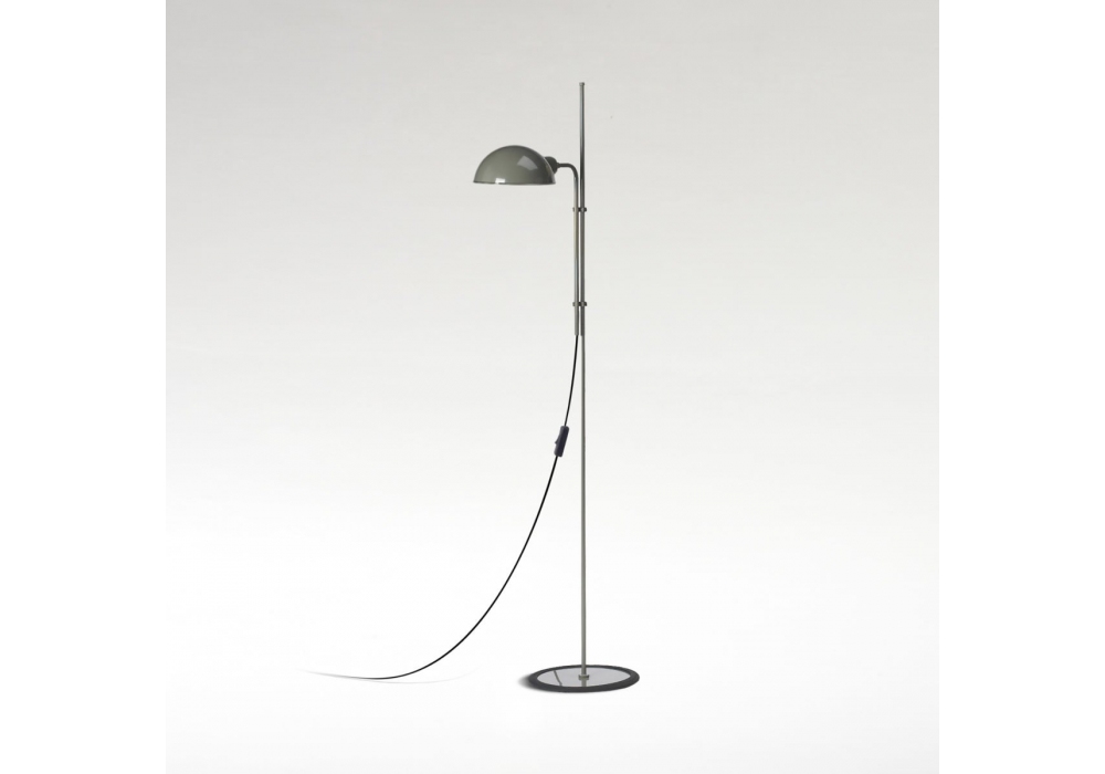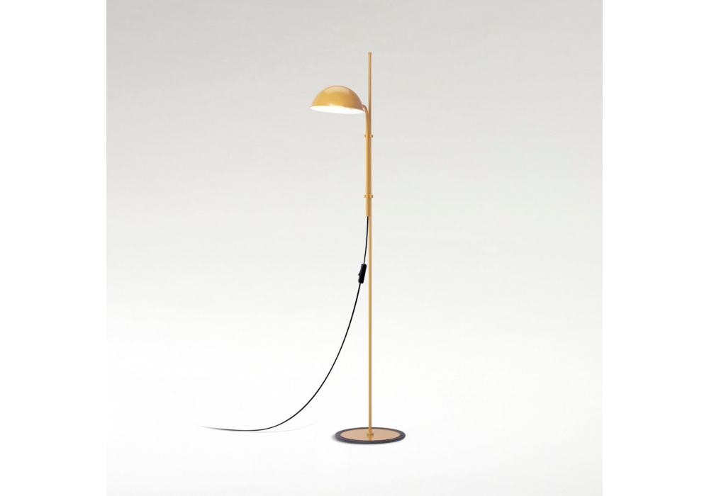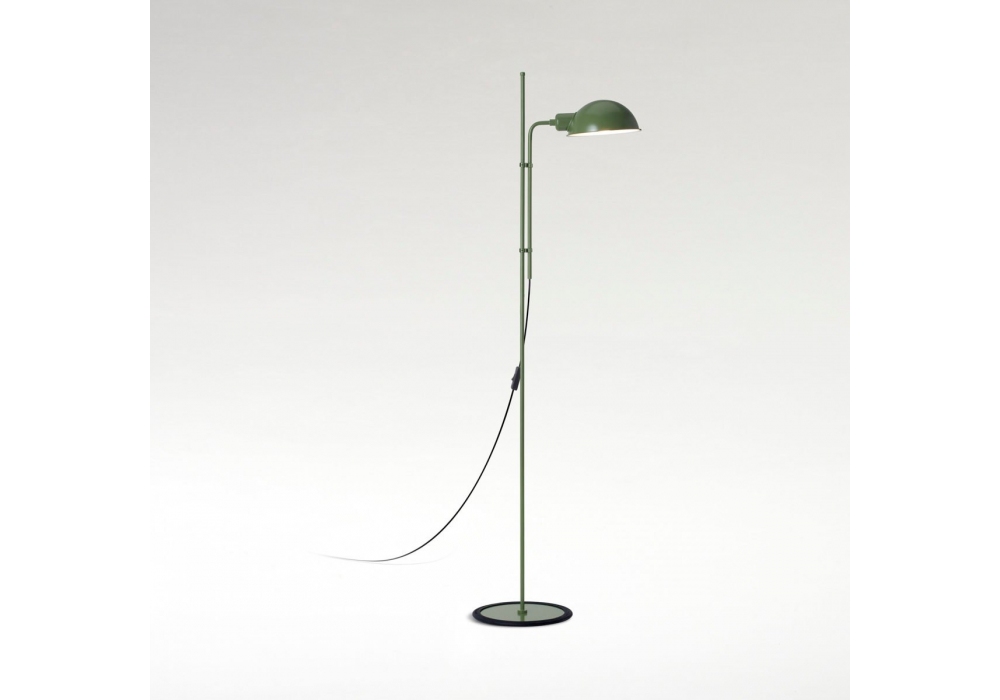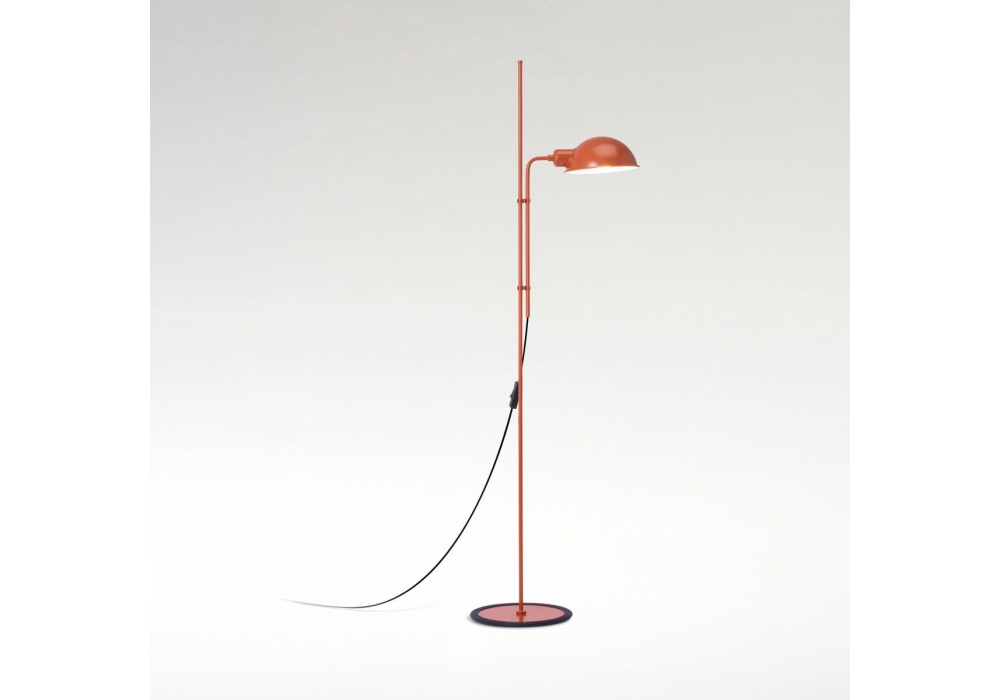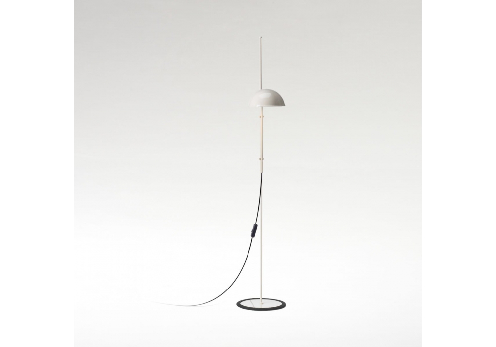 Funiculì conçu par Lluís Porqueras pour Marset est un lampadaire caractérisé par une base et une tige en fer laqué et un abat-jour en aluminium laqué. Disponible en différentes finitions. La base est enveloppée de caoutchouc noir.