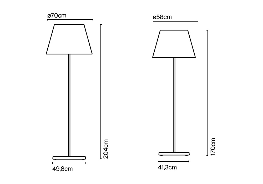 | Dimensions | • Ø 58 x H 170 cm; • Ø 70 x H 204 cm |