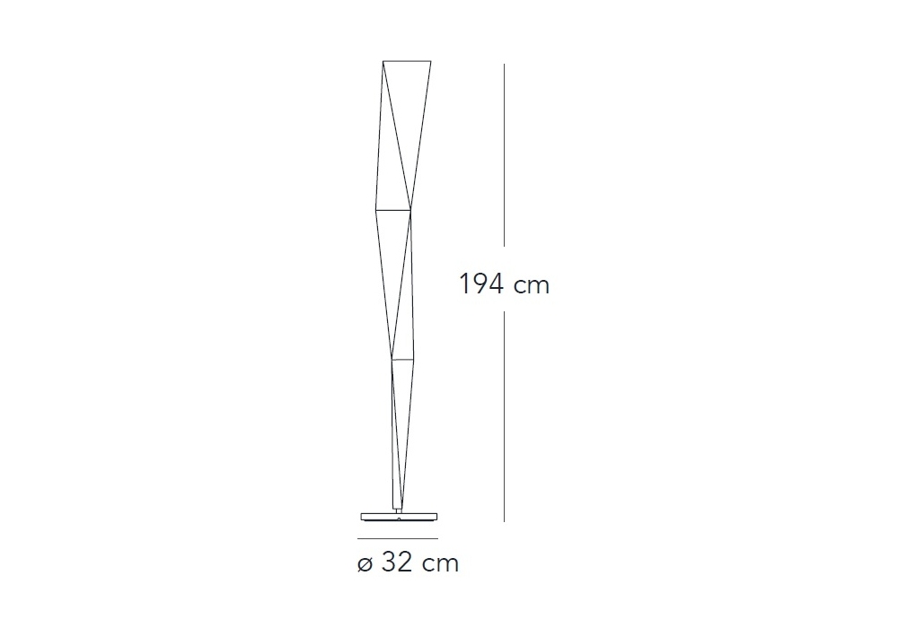 Vertigo conçu par Marco Acerbis pour Fontana Arte est un lampadaire à lumière indirecte dimmable avec un bouton. Structure en métal chromé. Cordon d'alimentation, gradateur et prise noirs.
