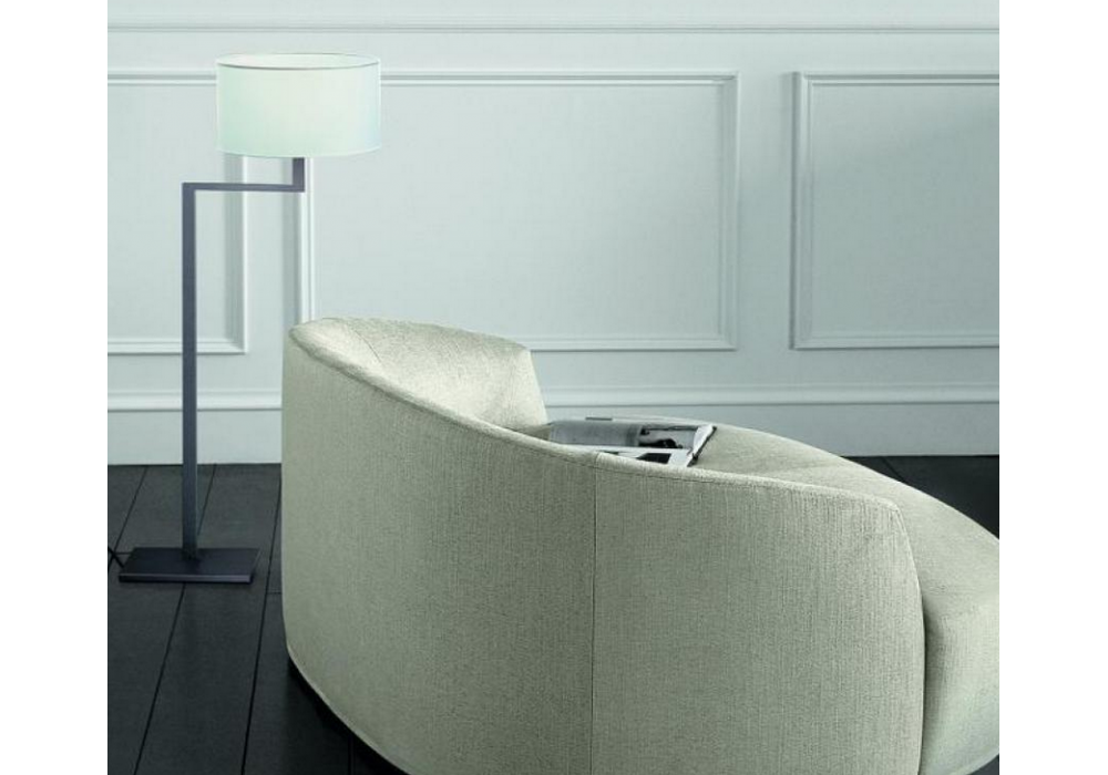 Jackie conçu par Massimiliano Raggi pour Casamilano est un lampadaire avec structure en métal verni bruni et abat-jour recouvert de tissu blanc lait couplé à du PVC. Câble électrique en PVC.