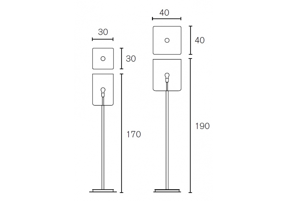 | Dimensions | 30 x 30 x H 170 cm; 40 x 40 x H 190 cm. |