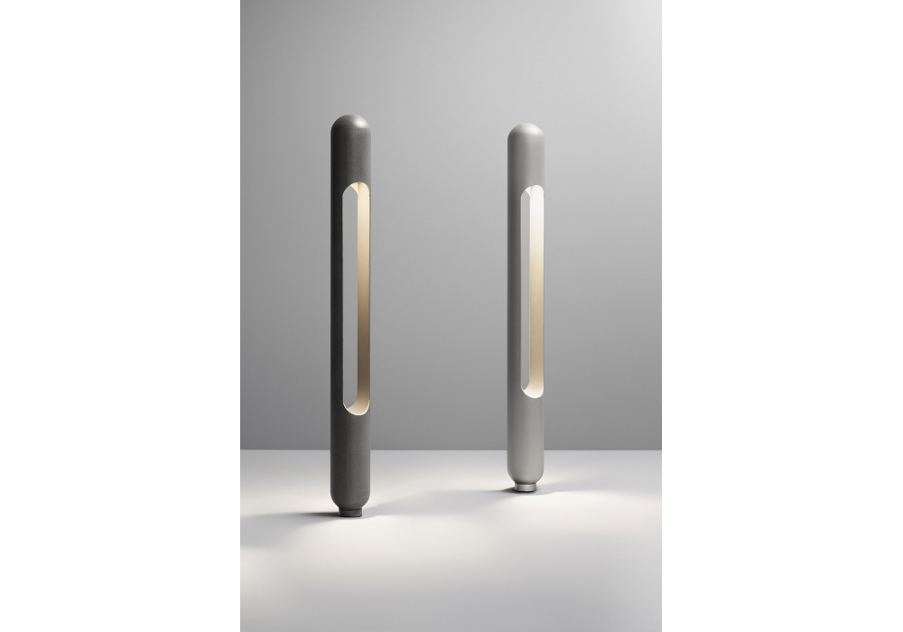 Grounding conçu par Harry Thaler pour Olev est un lampadaire d'extérieur en acier inoxydable, disponible en différentes finitions.