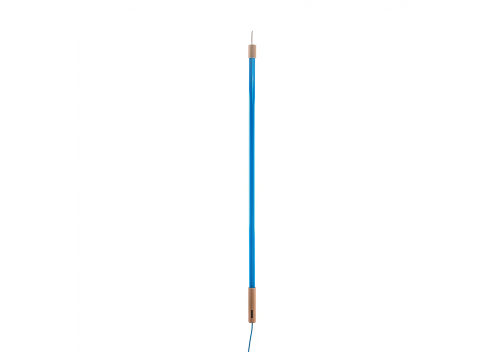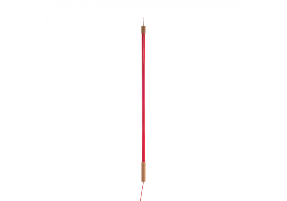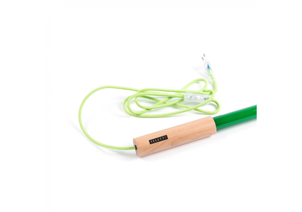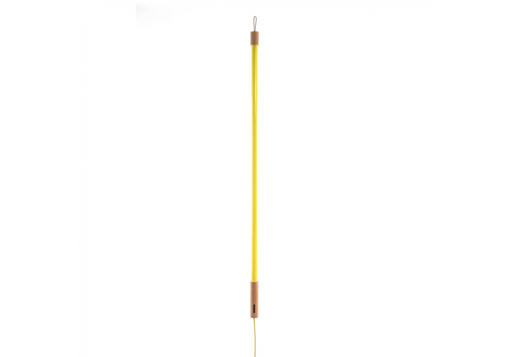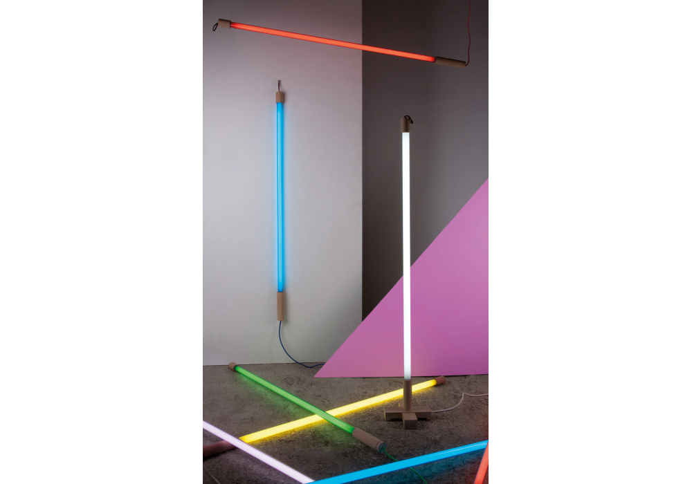 Linea conçue par Selab & Alessandro Zambelli pour Seletti est un lampadaire avec base de support et poignée de support en bois et métal. Le diffuseur est en verre et protège une source de lumière LED. Linea est disponible en différentes finitions.
