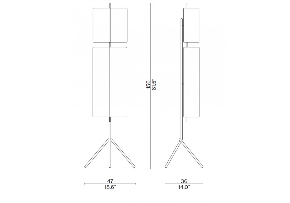 3to9 Floor conçu par Neri & Hu pour Cassina est un lampadaire avec des bandes LED en aluminium, fer et tissu. Disponible en différentes finitions.